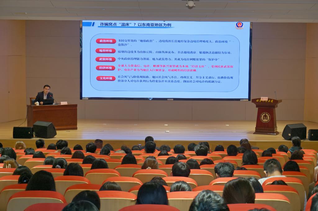 活动由保卫处处长胡一杰主持。活动期间,还举行了“无诈宿舍”授旗仪式,西关派出所教导员孔德昌警官、学生工作处副处长田凯为“无诈宿舍”代表颁发了流动红旗。此次报告会组织有序,内容针对性强,有效提升了同学们识别、防范和应对电信诈骗的能力。