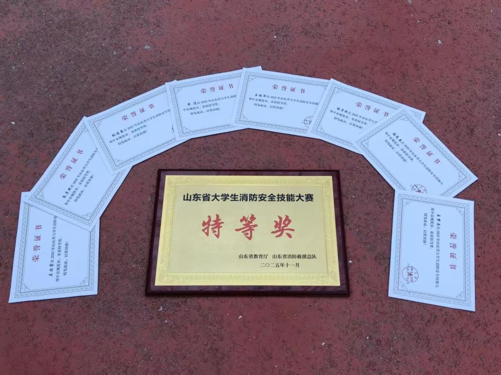 近日,由山东省教育厅、山东省消防救援总队联合主办的首届山东省大学生消防技能大赛圆满落幕。经过激烈角逐,由周漾、吴亦霏、王梦冉、朱子熙、张为春、杨子政、耿俊豪、王培洋8位曲师学子组成的参赛队凭借扎实专业功底、精湛实操技能与默契团队协作,从全省51所参赛本科院校中脱颖而出,成功摘得大赛最高荣誉——特等奖。
